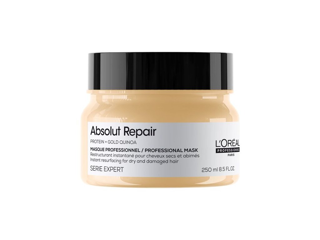 L’Oréal Professionnel Absolut Repair Mask je profesionální regenerační maska určená pro vlasy, které jsou oslabené, suché nebo poškozené chemickými procesy, teplem či mechanickým namáháním. Obsahuje proteiny a výživný extrakt z quinoy, které intenzivně obnovují vlasové vlákno, dodávají mu sílu, pružnost a viditelný lesk. Po pravidelném používání jsou vlasy zdravější, hladší a lépe se upravují.